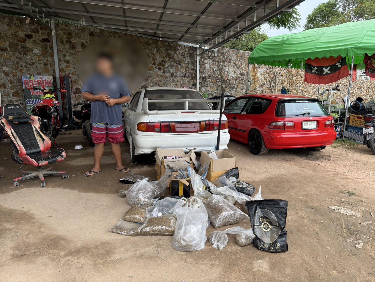 보도에 따르면, 이 가게는 이전에는 현지에서 "4×100"으로 알려진 끓인 크라톰 음료 판매점으로만 운영되었으며, 과거에도 여러 차례 단속을 받은 적이 있습니다. 이전에 체포되었음에도 불구하고, 운영자는 계속해서 법을 위반하며 불법 담배, 전자담배, 그리고 규제 약물 판매로 사업을 확장했고, 이것이 이번 단속의 계기가 되었습니다. 태국에서는 대마가 범죄가 아니지만 판매하려면 적절한 허가와 서류가 필요한데, 해당 매장에는 그런 것이 없었습니다.
