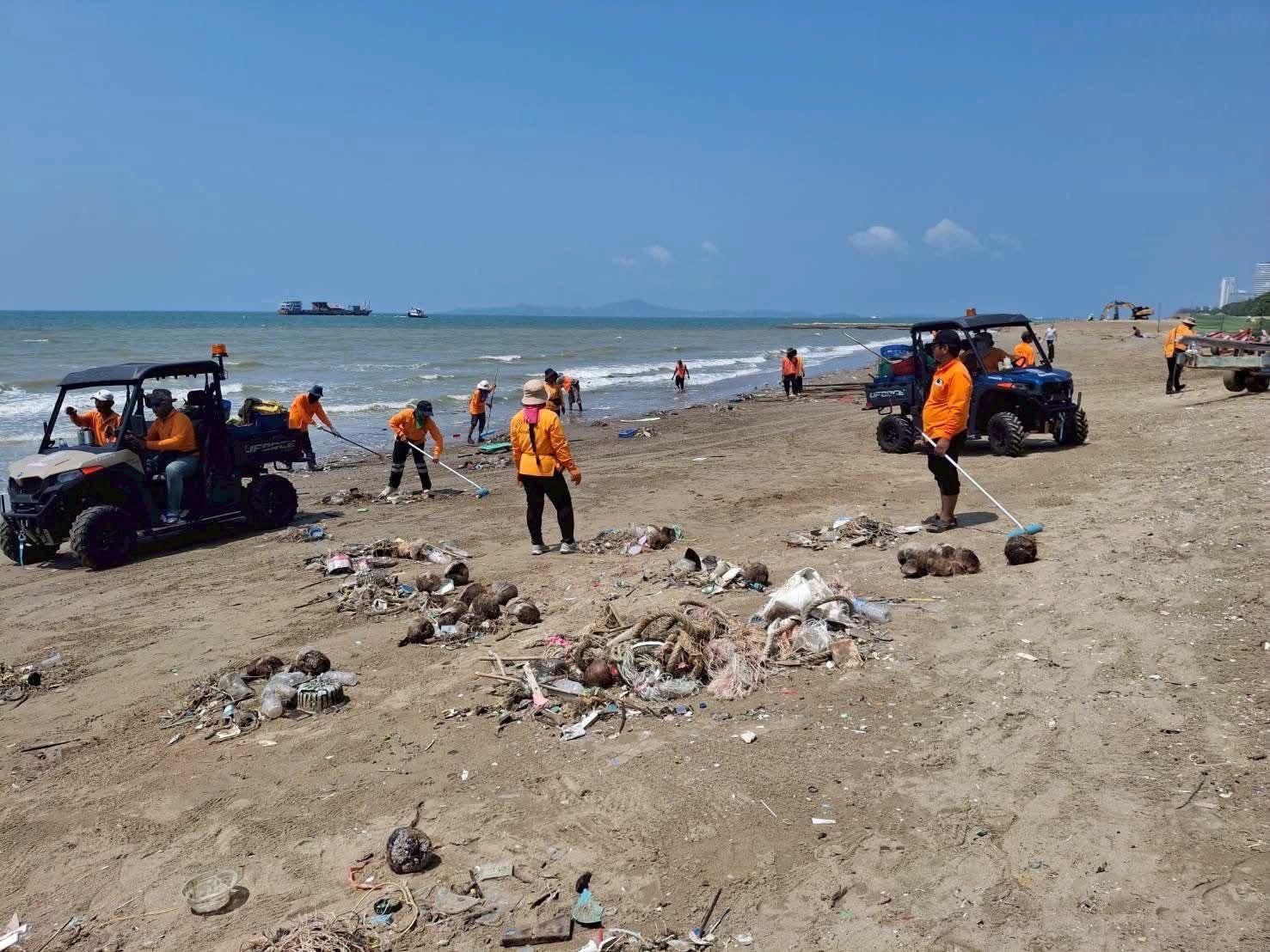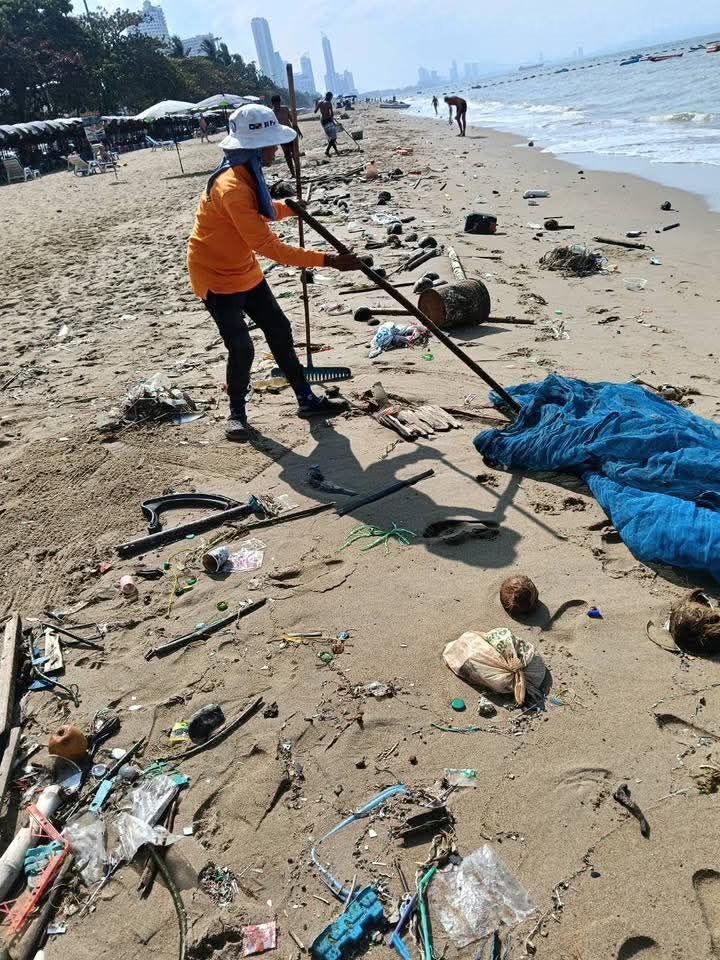 태국 파타야 – 파타야시는 강한 파도에 밀려 수 킬로미터에 걸쳐 관광 명소인 좀티엔 해변에 대량의 해양 쓰레기가 쌓이자 해변 정화 작업을 강화하고 있습니다. 어제 저희가 보도한 바와 같습니다.