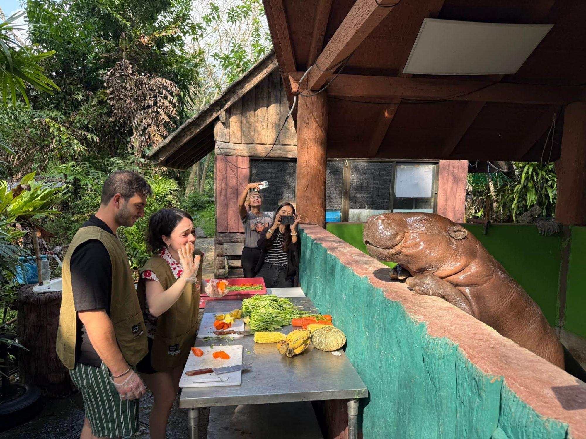 한 이탈리아 셰프가 파타야 인근 카오 케오 동물원에서 세계적으로 유명한 피그미 하마 "무뎅"과 그의 어미 조나를 위해 특별한 식사를 준비한 후, 여자친구에게 깜짝 청혼을 하여 잊지 못할 감동적인 순간을 만들었습니다.